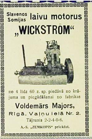 Wickström båmotor annons i Lettland 1932.