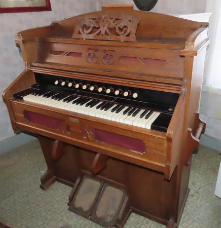 Davida Wasberg, spelverk. Davida fick pengar av bröderna i Amerika för inköp av helst ett piano, men det blev en orgel, som fotograferats hos Paul Vasberg i gamla stugan. Läs mera...