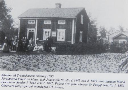 Nässlins stuga på Tranasbacken i Kvevlax. Isak Johansson Nässlin och hustrun Maria Eriksdotter är Holger Nässlins farföräldrar och också Aurelia Hedvik f. Nässlins farföräldrar.