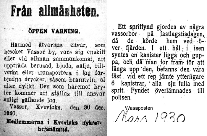 Uppgifterna kommer från bouppteckningar jag (Viking Åberg) råkat gå igenom och upptar säkert inte alla pannor. Troligen har brännvinsbränningen bidragit till att flera av dessa hörde till de rika i Vassor men kanske också bidragit till drunkningsolyckan 1925. Brännvinstillverkningen upphörde inte i och med förbudet. Vid vintertinget 1872 blev 14 Kuni- och Vassorbor dömda för brännvinstillverkning och försäljning.