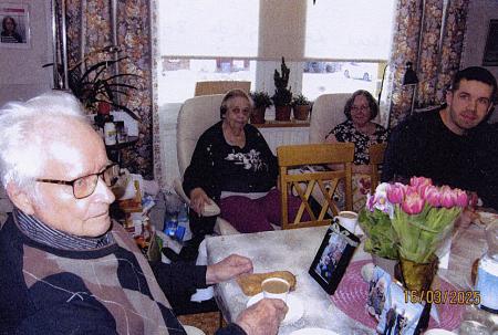 Herbert Rabb fyllde 89 år i mars 2025. Han firar här tillsammans med familjen i Koskö. Han är född Uppibyn i Vassor