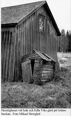 Timrat ”skithus” i Vassor, vid Isak Wiks och Edla Wiks gård på Grånnbacken