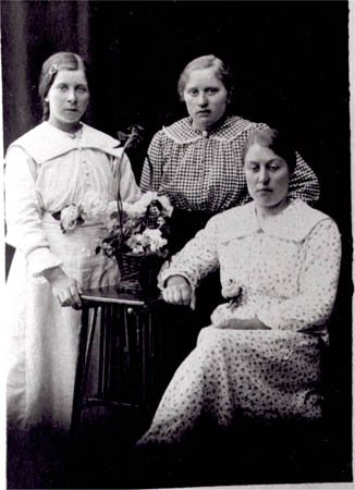 Tre damer från Bodstranden: Maria Hinders, Hanna Wasberg ”Gräddjas”, och Alma Flinkfelt g. med Alfred Frantz i hans gifte nr 2.