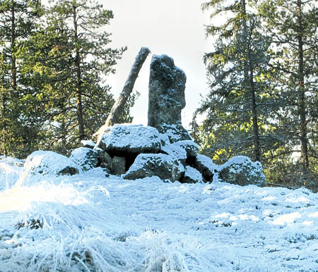 Råmärke på Fjärdshögd i Larven. Märket markerade gamla rån mellan Vörå, Kvevlax och Lillkyro. Det var innan markbytet med Kärklax i början av 1900-talet. Läs mera...