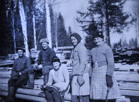 I barkningsarbete för bönehusbygget, Betesda i Kuni: Alfred Örn, Johannes Kuni (skatas), Rut Wasberg, Anna Herberts och Irene Forsen.