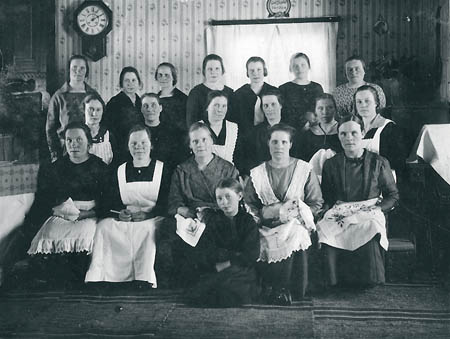 Kunimarthor på kokkurs vid Herrgos 1920. Aina Studd (Kesti), Ida Flinkfelt, Ida Studd, Elin Nyman, Irene Forsman, Aina Berg (Forsén), Irene Nylund, Sigrid Nyman, Olga Berg (Bäck), Anna Herberts, Hanna Södergård, Maria Kuni, Fia Örn, Jenny West, Ida Örn, Maria Stucki, Ida Berg, Sigrid Kuni och Berta Stucki. (Stucki kom från Schweiz och hade osttillverkning i Kunisundet.) (Härrgos)