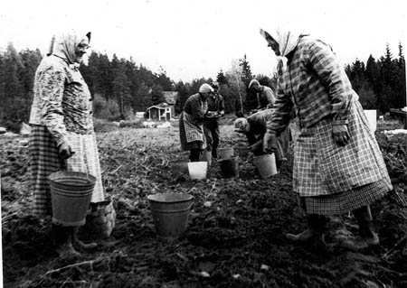 Potatisplockning: Närmast kameran t. v. Iréne Hinders, t. h. Ida Nyman. Längre bak Märta Hellman och Sanfrid Hinders.