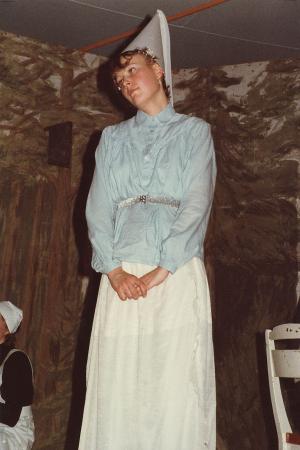 Julfest 1980. Greta Viklund i sketchen Hamlet. Vassorspexet