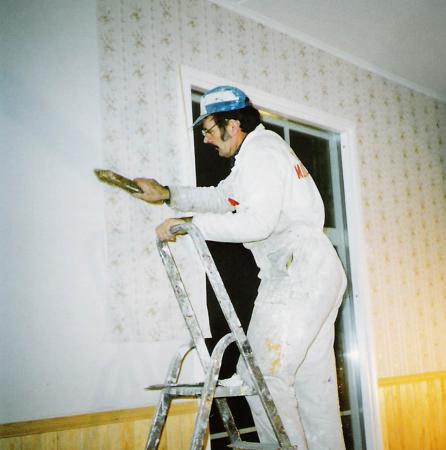 Paul Vasberg tapetserar serveringsutrymmet 1991. Vassor uf renovering.