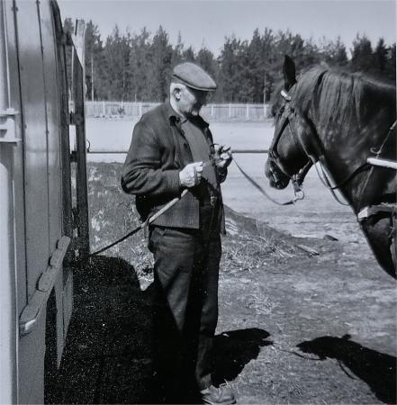 Vilhelm Sandvik och Kurt Östmans häst Erilus. Vilhelm och Kurt följdes ofta åt på travtävlingar.