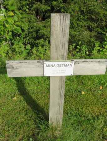 Östman Mina 14/8 1860 – 12/11 1953 (Från Sundom; Plunsen, Mellangrånn, ”Plåns-Miina”)