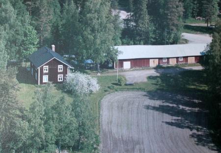 "Riibak Alfriedas", Alfred Kuni och Helga Kunis gård, Senare ägare var sonen Karl Kuni och Karls son Henrik Kuni. I gården fanns byns telefoncentral. Byggnadsår 1920. Flygbild. Flygfoto.