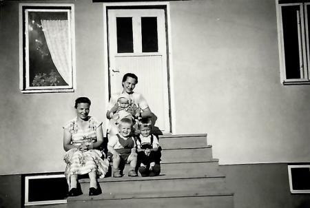 Mary Nissfolk har sin son Roland famnen, framför dem från vänster Mirjam Olander (Marys syster från Sibbo), Samuel och hans äldre bror Stefan, fotografen är Magda Olander